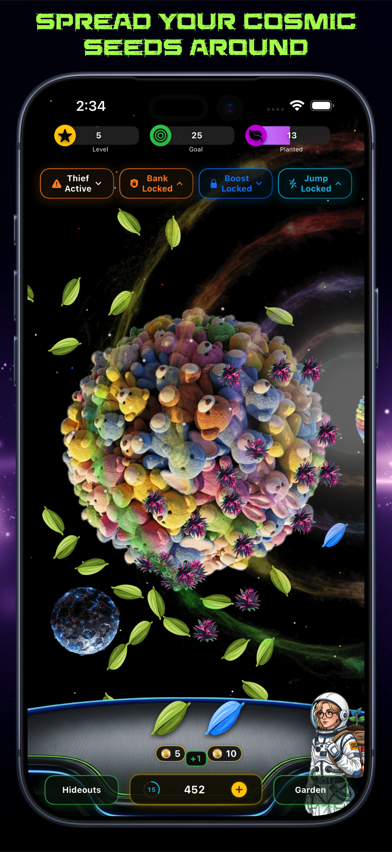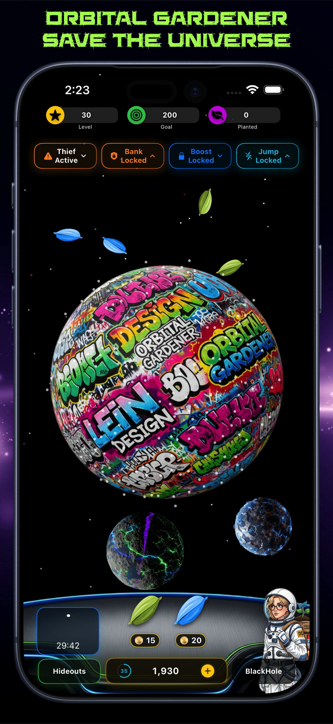 Orbital Gardener is a beautifully crafted space puzzle game where you plant colorful alien seeds across stunning planets. With three game modes, quiz challenges, cosmic disasters, and full customization—it's perfect for ages 5 to 105!